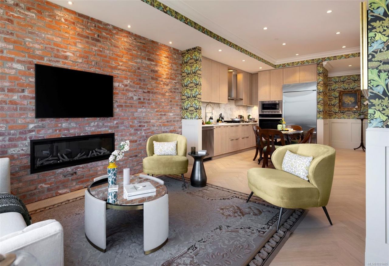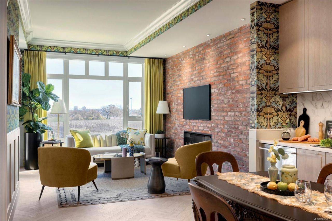 This stunning display home showcases wainscotting, crown mouldings, William Morris wall coverings and other timeless upgrades throughout, making it a truly unique place to call home. This spacious 1-bed, 1-bath home features a practical floorplan with 9'7 ceilings, 8' doors, and herringbone oak flooring. The chef-inspired kitchen offers a GE Monogram appliance package, 5-burner gas cooktop, tile backsplash, and Italian ash cabinetry with pull-out shelving. The spa-like bathroom includes a soaker tub and frameless glass shower. The living area features a brick wall and electric fireplace, adding character and comfort. Building amenities include...read more